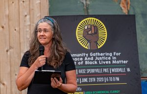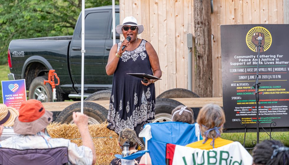 On June 28, a crowd estimated at 500 gathered at Eldon Farm in Rappahannock County to support peace and justice and the Black Lives Matter movement. UUBRidge was well-represented in the audience, and Rev. Russ Savage and Rachel Bynum, who serves on the Rappahannock School Board, were among the many inspirational activists and speakers, who included clergy members, students, political office holders and candidates, and others.