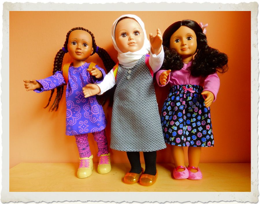 The project uses standard 18-inch dolls, and the website has information and sewing patterns for simple, modest clothing. The dolls form one component of a traveling library with 34 award-winning picture books based on the immigrant experience. Used in conjunction with these books and with lesson plans, the dolls help children internalize concepts such as “What it’s like to be different?” What’s it’s like to be different and new?” and “How to be Welcoming.”