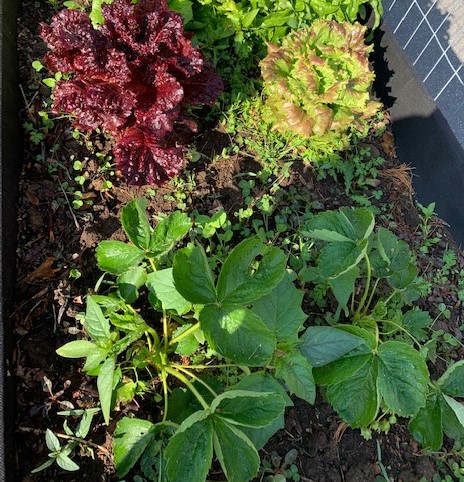 Not quite like Jack’s beanstalk, but still pretty impressive! Various kinds of lettuce, chard and other greens continue to be donated to the local food pantries. At the food security gardens in Amissville and in Page County tomato, pepper, squash, cucumber, and even strawberry plants are in the ground.